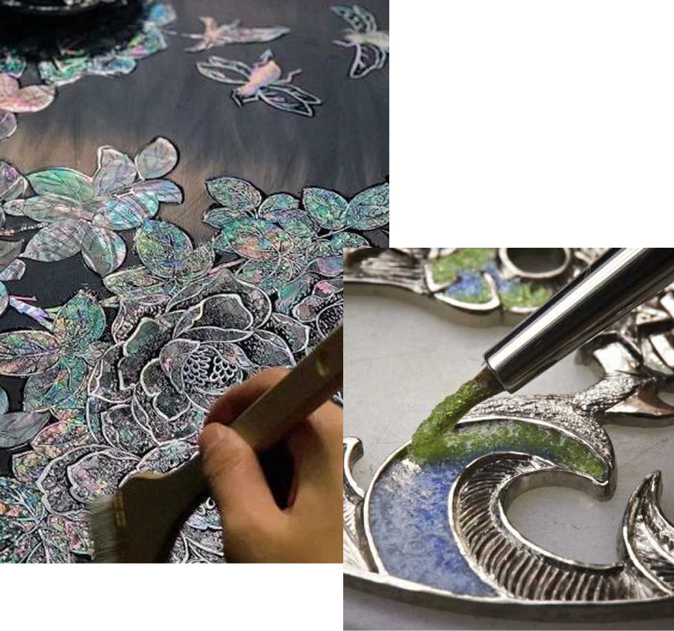 Our artisans draw upon generations of Intangible Cultural Heritagecrafts once reserved for temples and palaces, now reawakened on a contemporary canvas. Gold leaf is applied by hand. Indigo coaxed into flowing forms. Each gesture, a quiet dialogue between the artist and the earth.